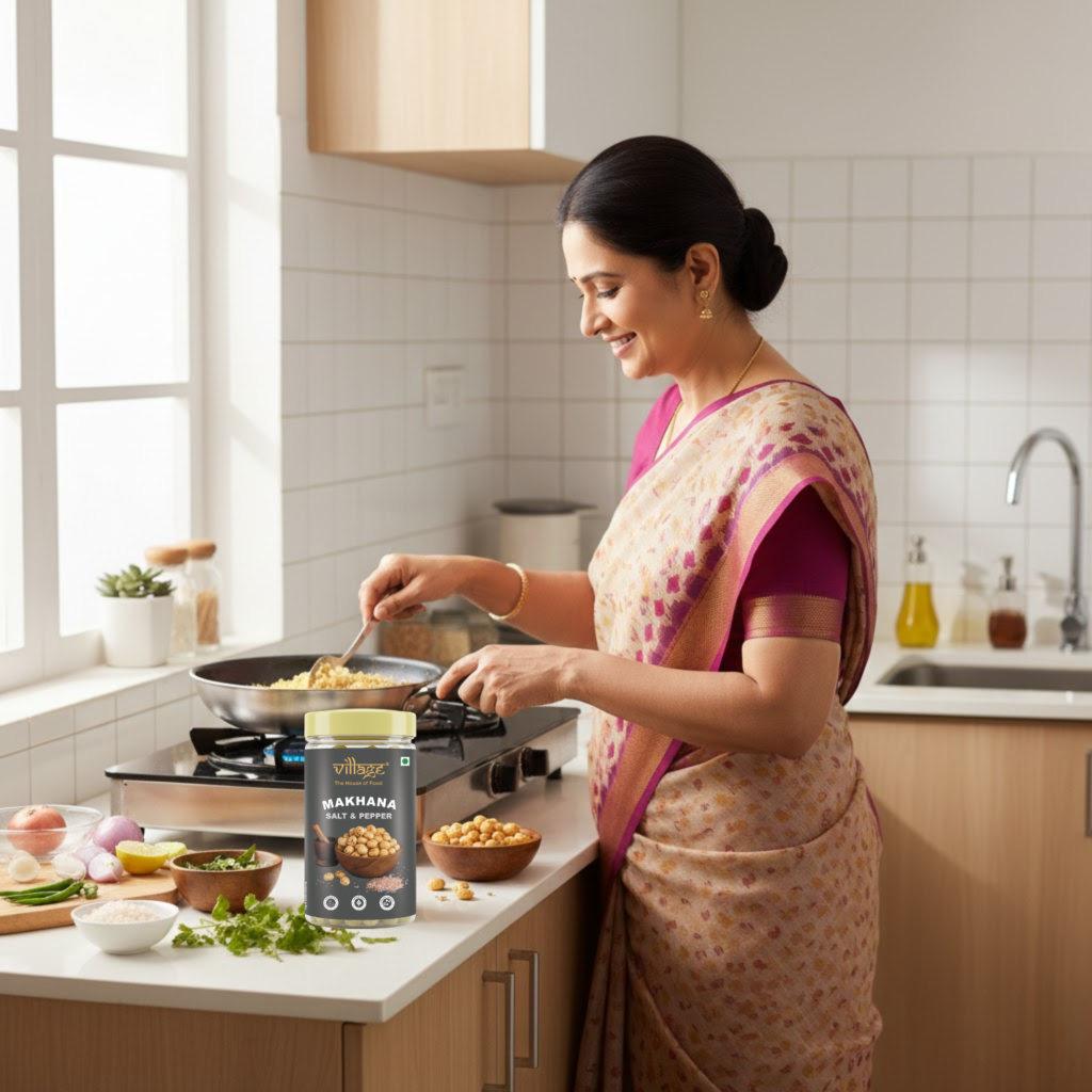 Discover the goodness of nature with Village – The House of Food’s premium Roasted Makhana.