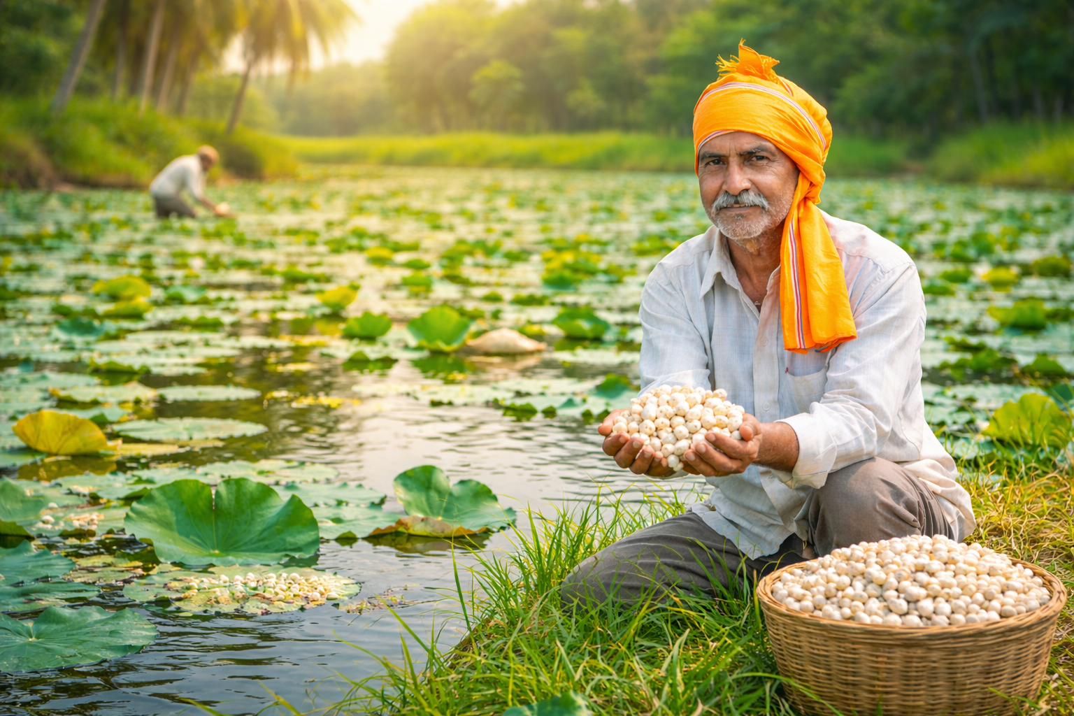 In the heartlands of India, where time moves gently and the land breathes tradition, a quiet revolution is taking place — led by farmers, ponds, and a centuries-old superfood: foxnuts.